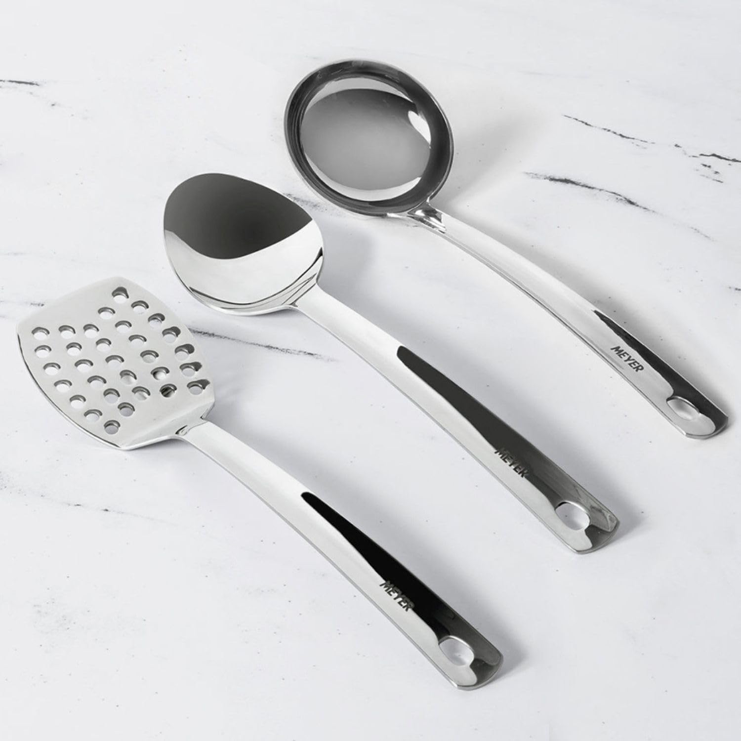 Meyer Stainless Steel Kitchen Tools Set 3 Pieces – Slotted Turne 33cm, Serving Spoon 32cm, Ladle, 30cm | Kitchen Utensils Set | Kitchen Accessories Items, Silver