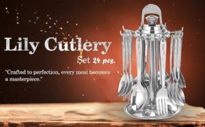 Parage 24 Pieces Lily Cutlery Set Stainless Steel with Stand (Contains 6 Dinner Spoons, 6 Tea Spoon, 6 Dinner Fork, 6 Soup Spoons, 1 Stand) Spoon Set for